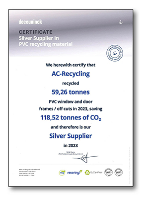 André Celis Recyclage is Silver Supplier van Deceuninck